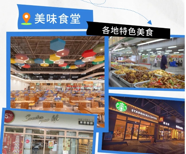 · 食堂与美食街:大型园区内通常有多个食堂和美食街,提供各式各样、不同价位的菜品,照顾不同地域员工的口味。