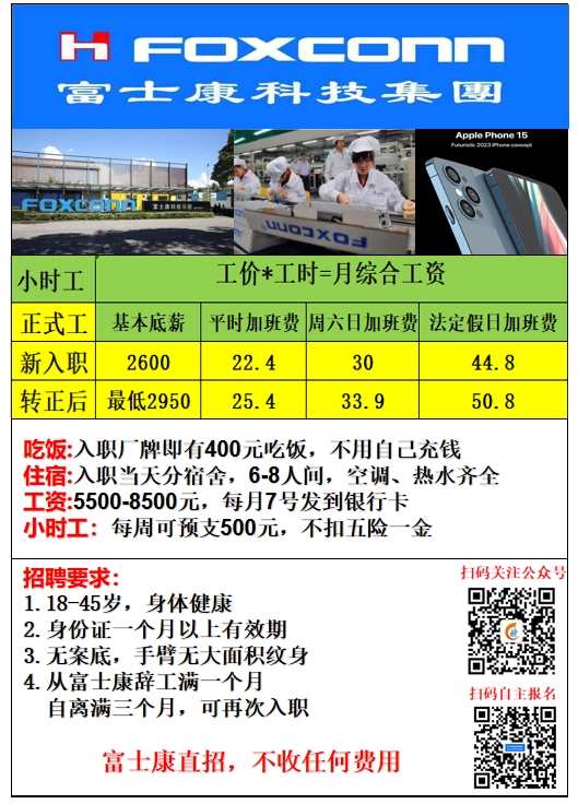 二、富士康的工作时间怎么安排?富士康一个月休息几天?