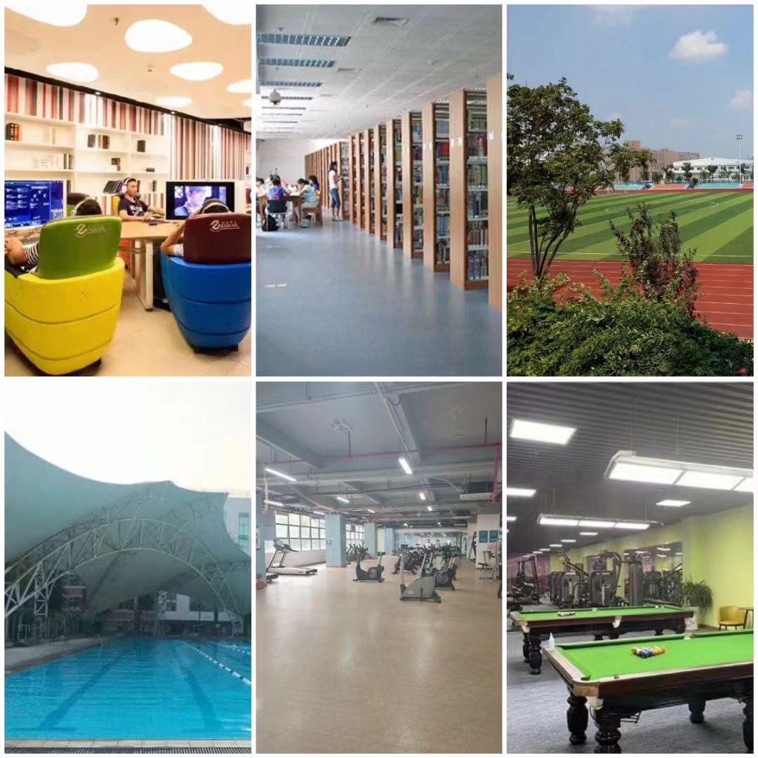 ·休闲娱乐设施 :健身房、游泳池、舞蹈室、电子竞技室,图书馆,